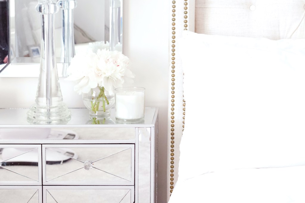 About a year later, when my budget allowed me to, I purchased these gorgeous and spacious mirrored accent cabinets to use as side tables. After that it took me until I needed to stage our house to sell to get working on our bedroom again! I pick up some matching lamps and mirrors to hang over the side tables from Home Sense but these lamps and these mirrors look similar! **Tip: mirrors always make a space look larger. Our master room is still not done but it’s getting there!