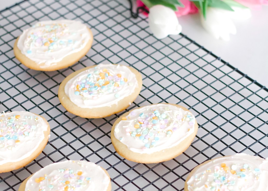 My two year old enjoys baking, so this has been a good little activity for us when it’s a bit too cold to go outside. What I love about these cookies is that they are incredibly easy to make, which is so appealing for amateur bakers such as myself. I also love the frosting on top, it reminds me of buttercream icing you might find on a yummy vanilla birthday cake. So so yummy!!