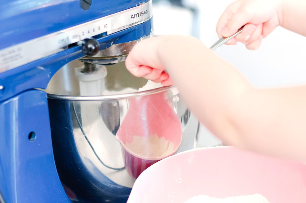 • Cream butter, sugar and vanilla (cream = use the paddle attachment of your mixer, not the whisk)