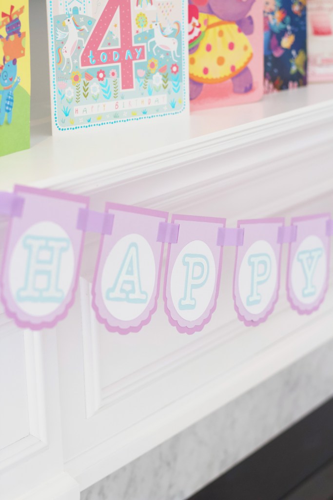 After I choose a colour scheme, I check my existing stash of craft paper and go to Michaels if necessary to get a few packs of paper in my colour scheme. Lucy for me, I already had lots of silver and blue paper so I just had to pick up some purple paper. I make banners using my Cricut and stick to the same colours so everything flows. Something I also think is really fun and adds special touch is making my own confetti! For this party I chose different sized snowflakes and Elsa’s profile in shades of purple and blue for confetti.