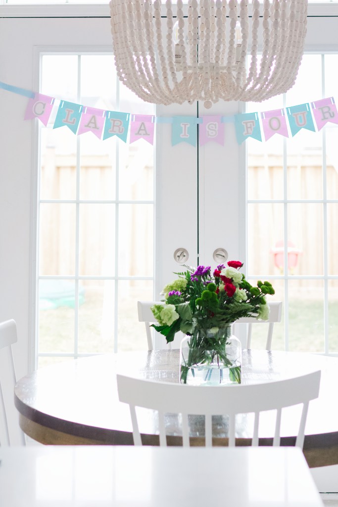 We had a busy week before the party which included sick kids home from daycare which slowed down last minute projects and finishing up last minute errands. The morning of the party I had to travel to another town for the balloons, pick up some candies at Bulk Barn, get ingredients to make a blue drink and grab some fresh flowers. It was a hectic morning and these are all things I could have done at least a day before the party if not a week before! It was pretty rushed the morning of the party and it didn’t have to be! So keep last minute errands to a minimum!
