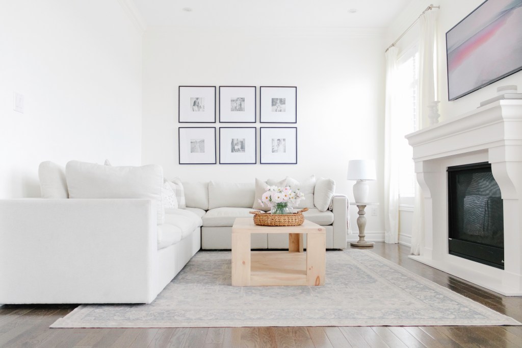 Our sectional was fairly easy to put together, but you definitely need a helper when it comes to flipping it over since it’s so big)! Prior to receiving my Cozey, I watched a few videos on Instagram, so I went into the process knowing what to do. The steps are repetitive, so once you get one part assembled, the rest is easy peasy! Once assembled, the cushions fluffed up immediately, there were no weird smells or anything. Basically, it instantly made our living room look put together and it was and is still so comfortable!